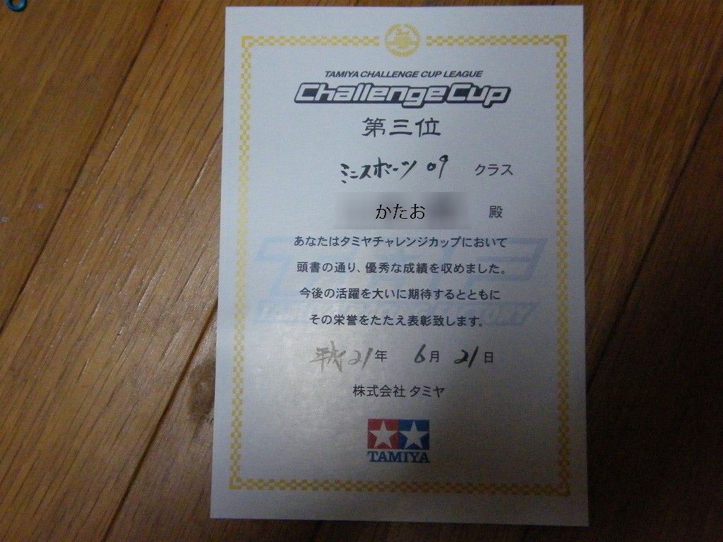 6月28日(日) ライトサーキットでM05シェイクダウン予定 7月 4日(土) タミグラ富山 F1、ミニフリーク 7月 5日(日) タミグラ富山 峠09、F104ワンメイク 7月11日(土) タミグラ東京 ミニスポーツ09、ミニスポーツLE 7月12日(日) たぶん休養日 7月18日(土) ライトサーキットでミニ調整&タミグラの見学 7月19日(日) タミグラ関西 ミニスポーツ09 7月20日(祝) タミグラ静岡 F104LEワンメイク、ミニスポーツLE 耐久も参加したいなぁ・・(誰か混ぜてください(笑)) 7月25日(土) 7月26日(日) どこかのチャレに行ければいいなぁ。 8月は静岡大会、四国大会は行きたいなぁ。 サーキット、レース会場等で見かけましたらお気軽にお声をかけてください ![]() |